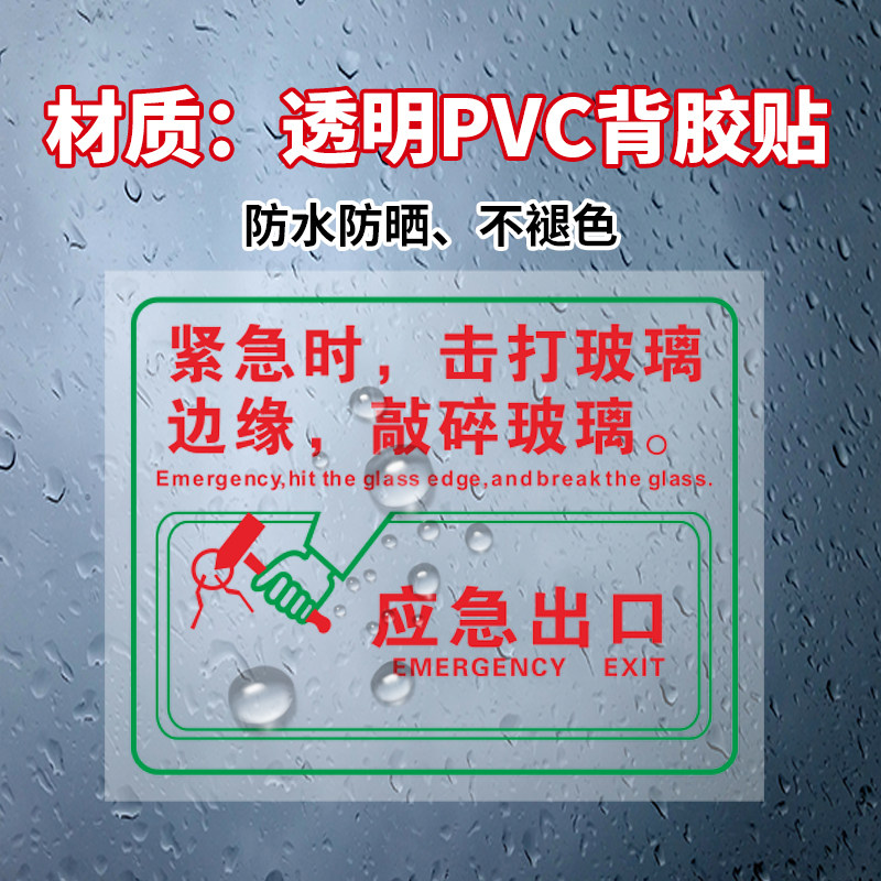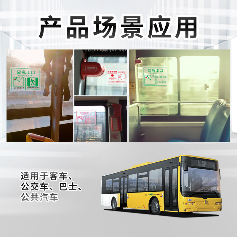 应急出口透明贴消防逃生救援窗口玻璃贴纸客车公交大巴车窗安全出口标识贴公共汽车安全锤使用方法透明提示贴