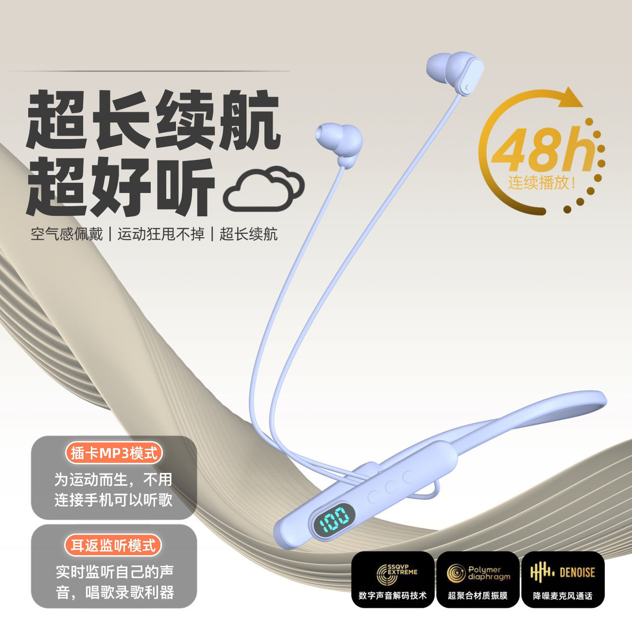 超长续航大电量蓝牙耳机无线颈挂脖式运动2025新款跑步专用高音质