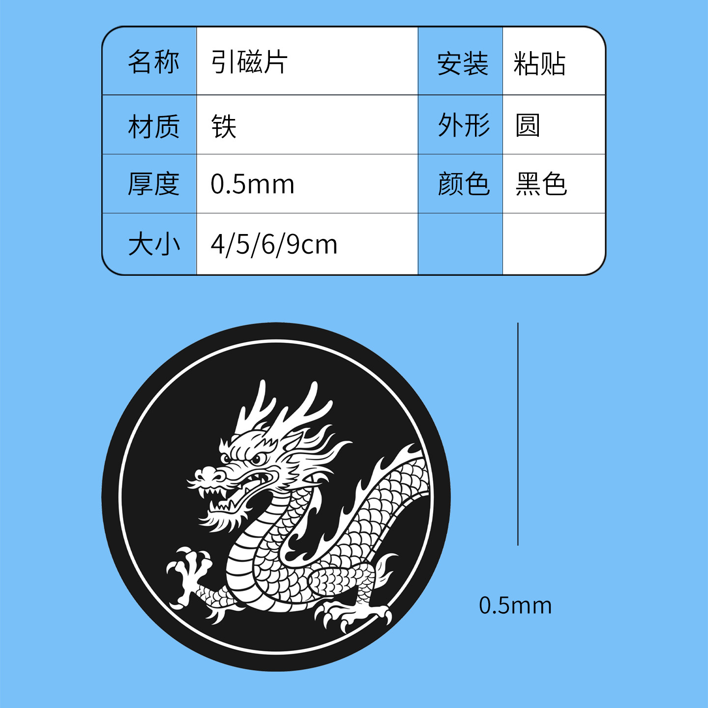 磁吸车载支架强力引磁片超薄中国龙带背胶铁片隔离膜圆形大小散热器浴室镜柜收纳平板手机壳通用散热磁吸贴片