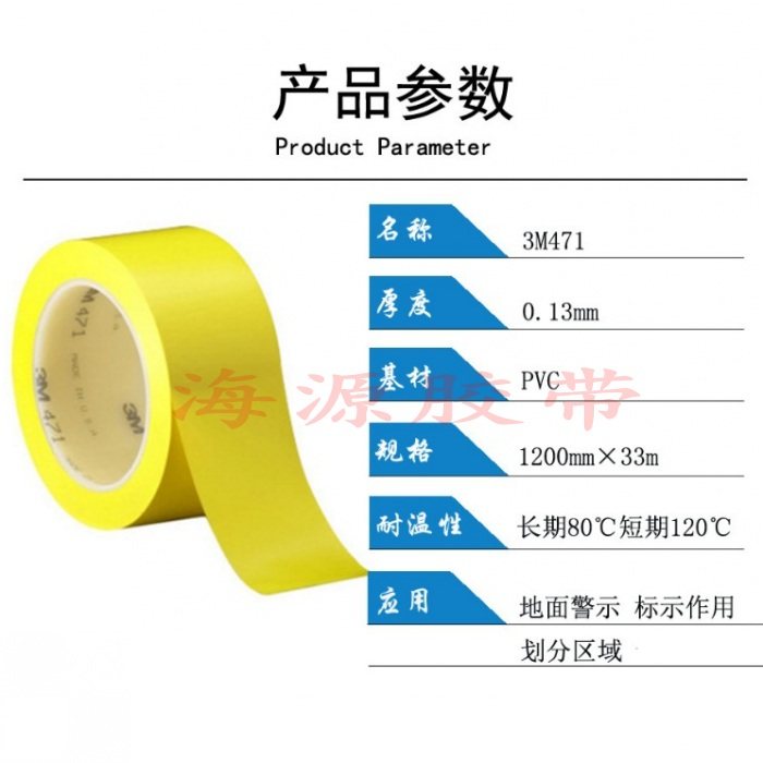 3M471地板胶带 黄色 彩色 划线标识警示胶带 无痕胶带5S定位胶带