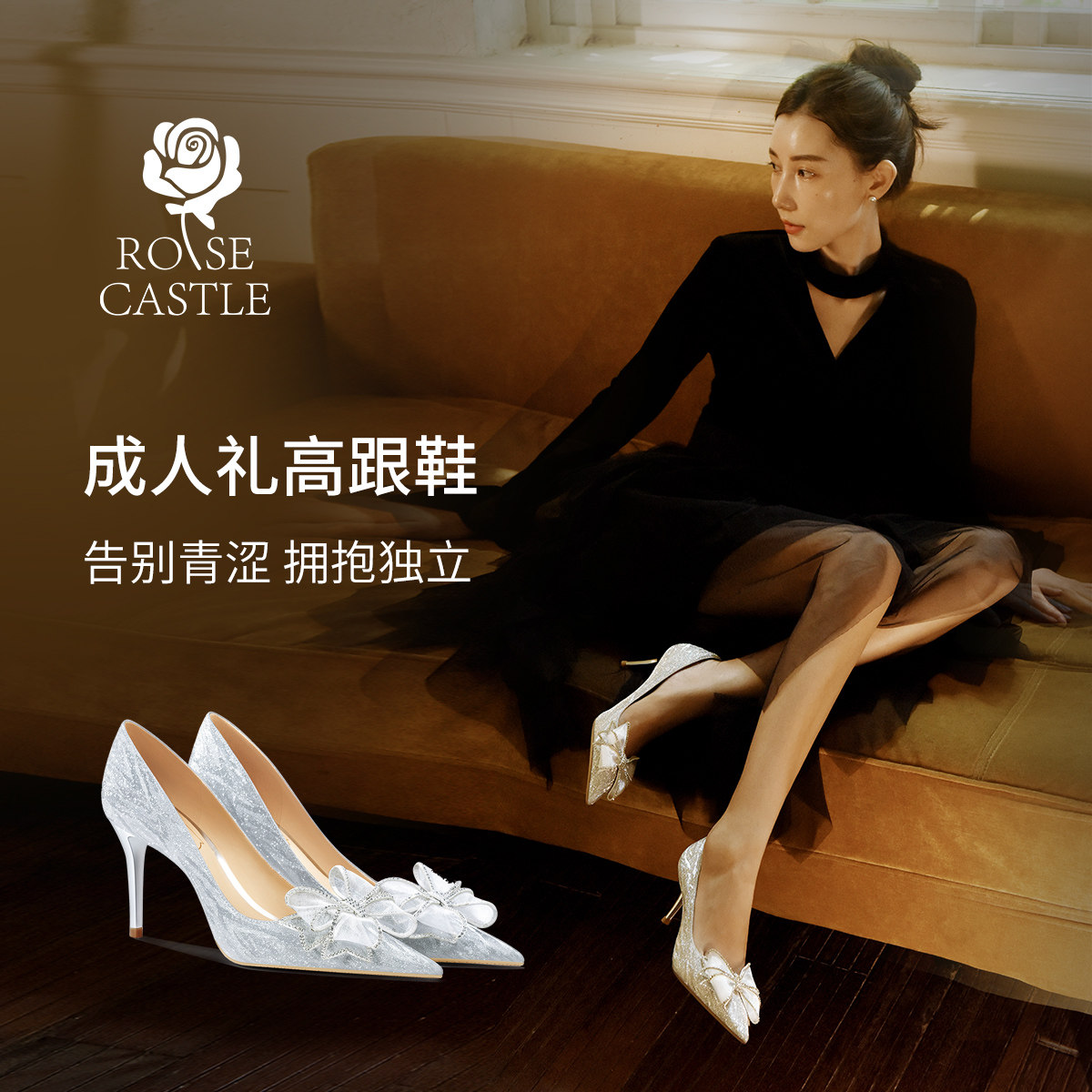 18岁成年礼水晶蝴蝶结高跟鞋七夕礼物纪念日小众高级感宴会礼服鞋