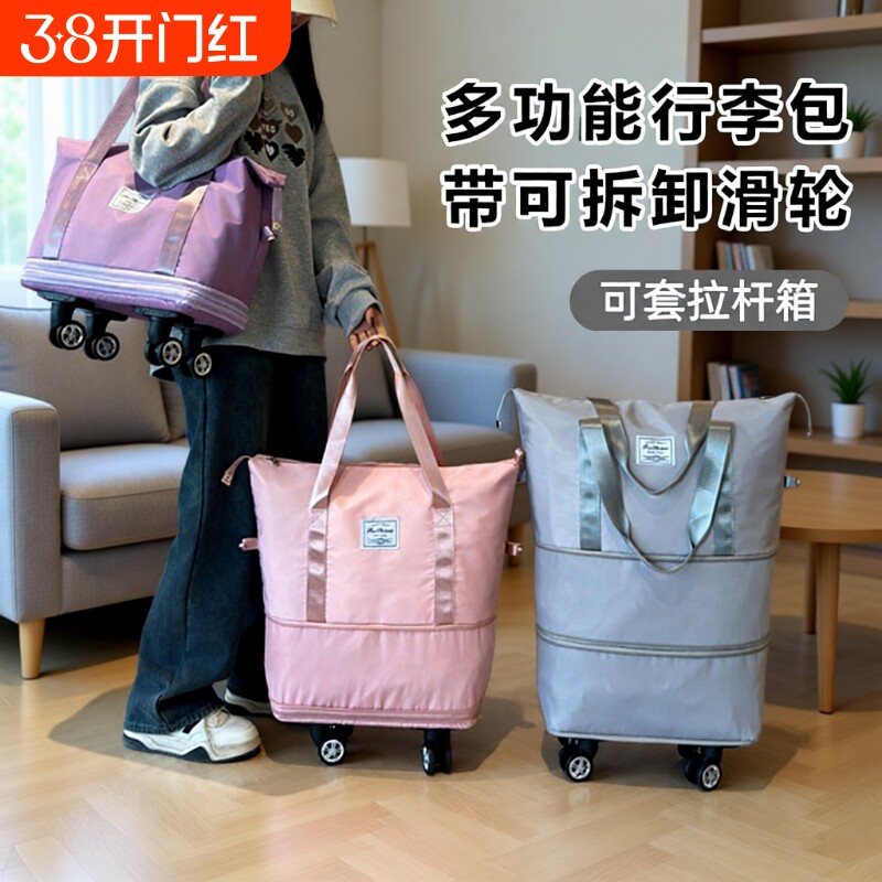 带滑轮万向轮轮子的旅行包女大容量轻便折叠拉杆行李包行李袋外出