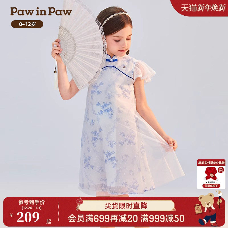 【云霓系列】PawinPaw卡通小熊童装女童青花瓷国风旗袍礼服连衣裙