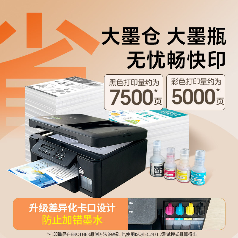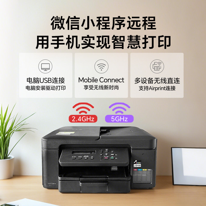 兄弟彩色喷墨打印机无线自动双面打印连续复印扫描手机办公墨仓式