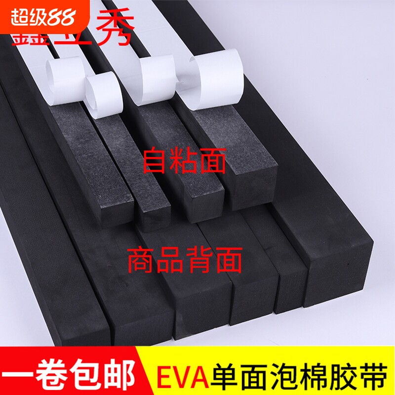 黑色单面海绵EVA胶带防撞密封条隔音减震缓冲挡水止浆填缝泡沫橡胶泡棉胶条加厚防水自粘型缝隙填补隔音贴