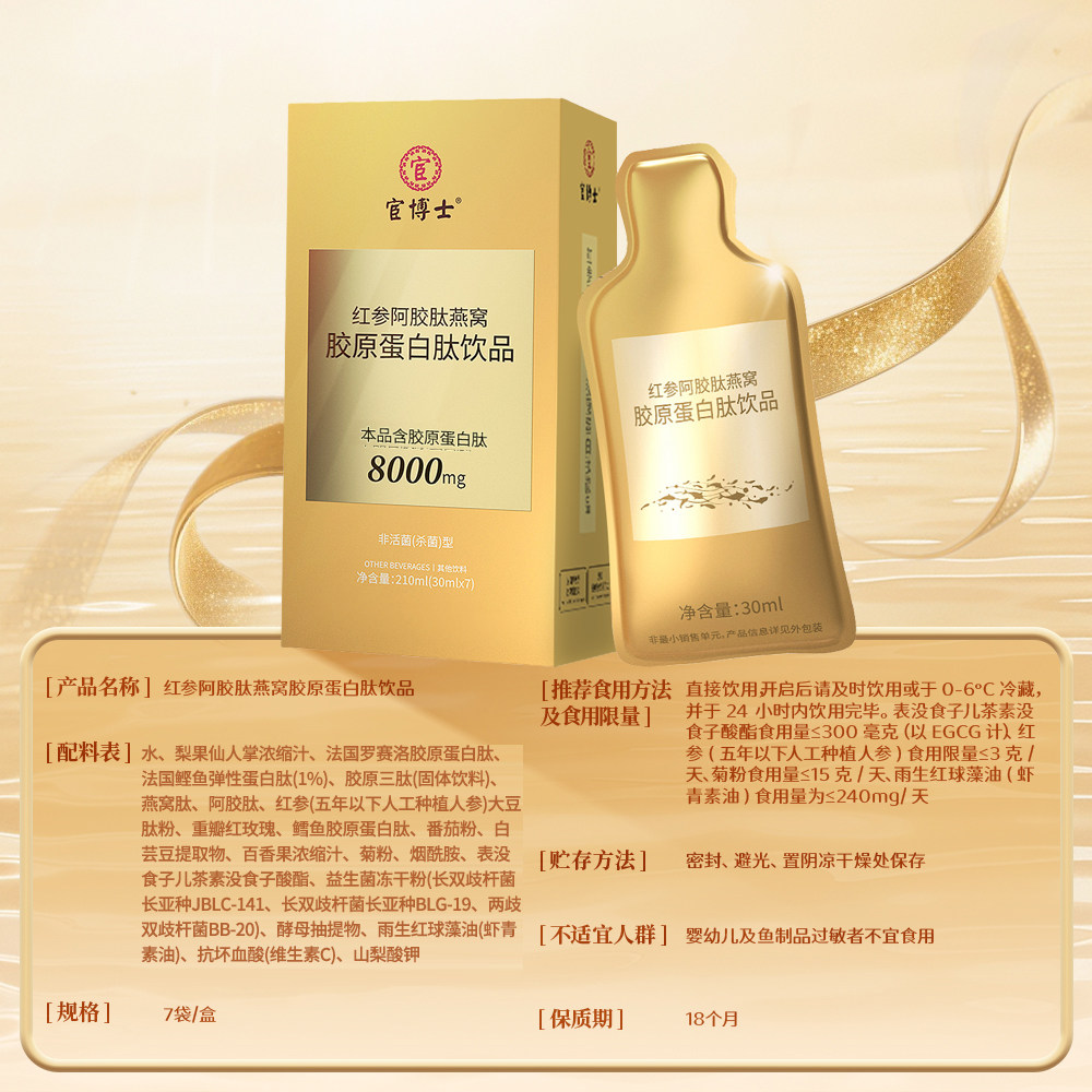宦博士红参阿胶肽燕窝胶原蛋白肽饮品30ml*7袋胶原正品人参小分子