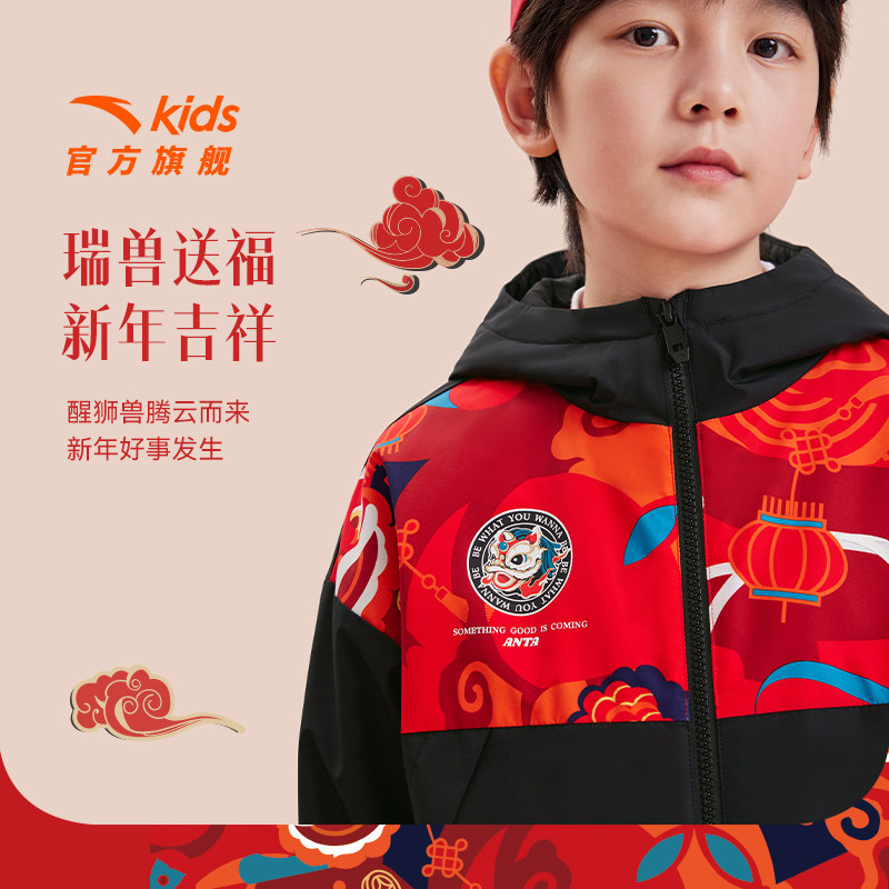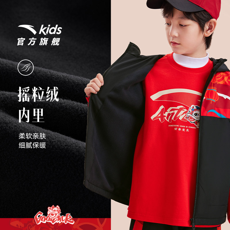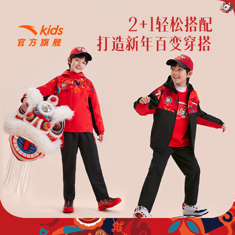 【马年红色新年】安踏儿童新年套装男童三防加绒外套裤子拜年衣服
