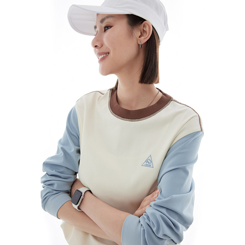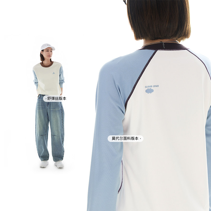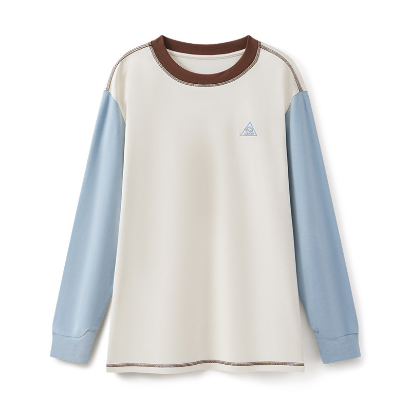 云上生活【云朵弹弹T】撞色复古宽松显瘦长袖女T恤春季落肩袖上衣