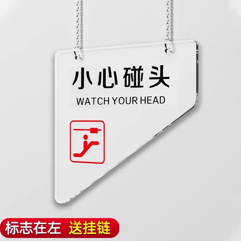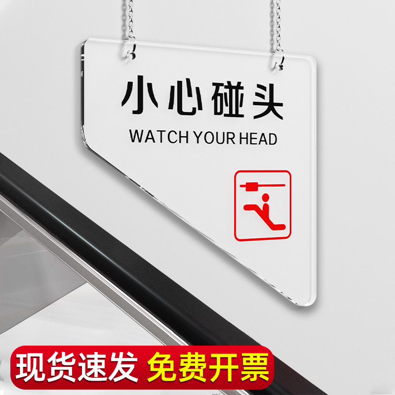 自动扶梯安全警示标识牌小心碰头提示牌挂牌电梯楼梯防撞指示牌亚克力扶手警示牌悬挂吊牌商场超市标志牌挡板