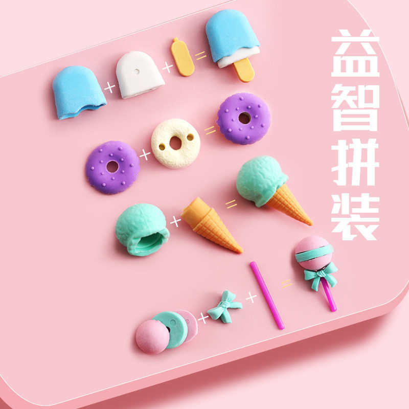 卡通精美造型橡皮擦套装甜甜圈棒棒糖无屑干净无毒不留痕小学生幼儿园开学礼物奖励节日礼品小礼物圣诞冰淇淋