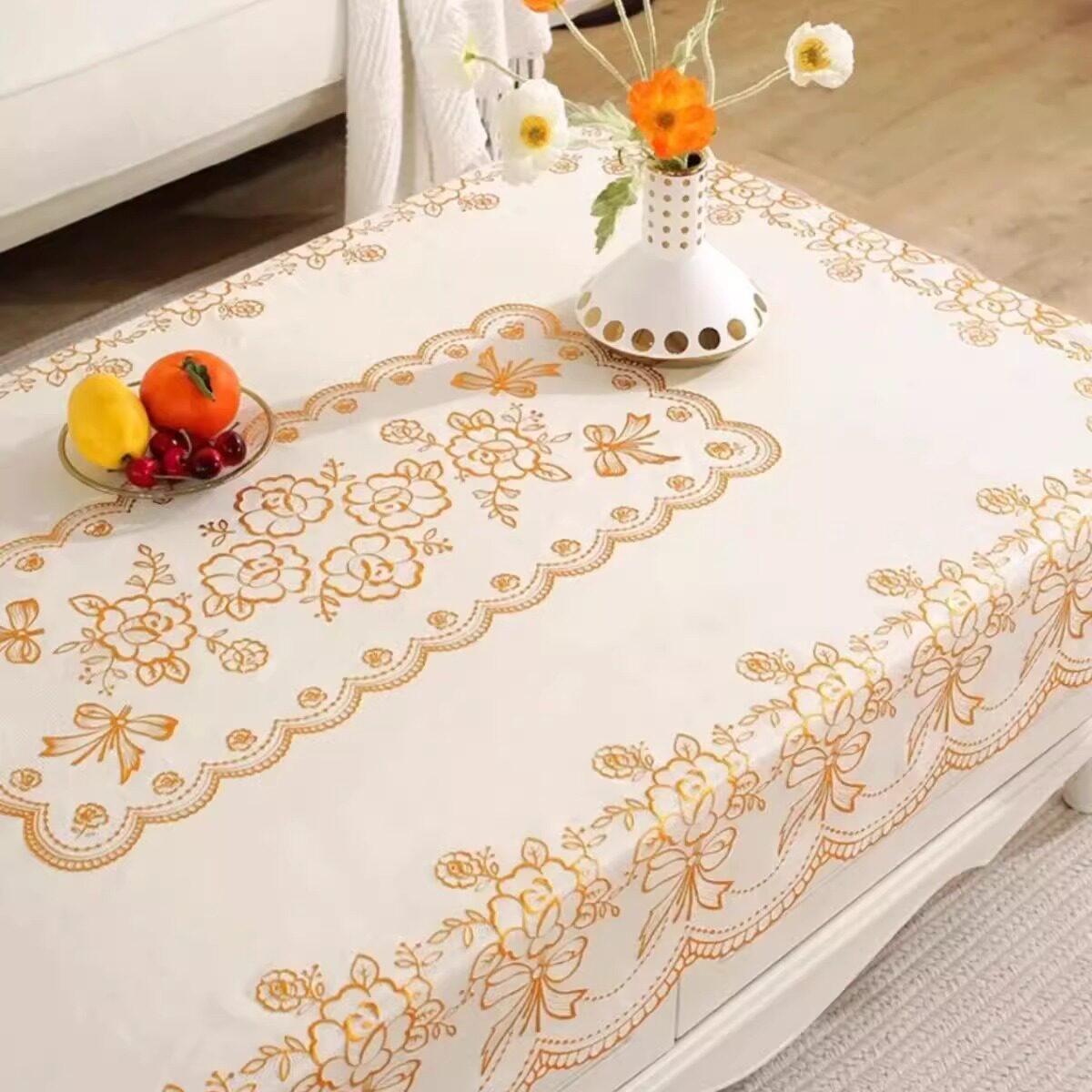 桌布防水防油免洗防烫长方形餐桌布茶几垫塑料台布套客厅烫金桌布