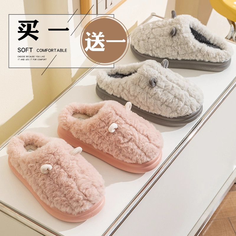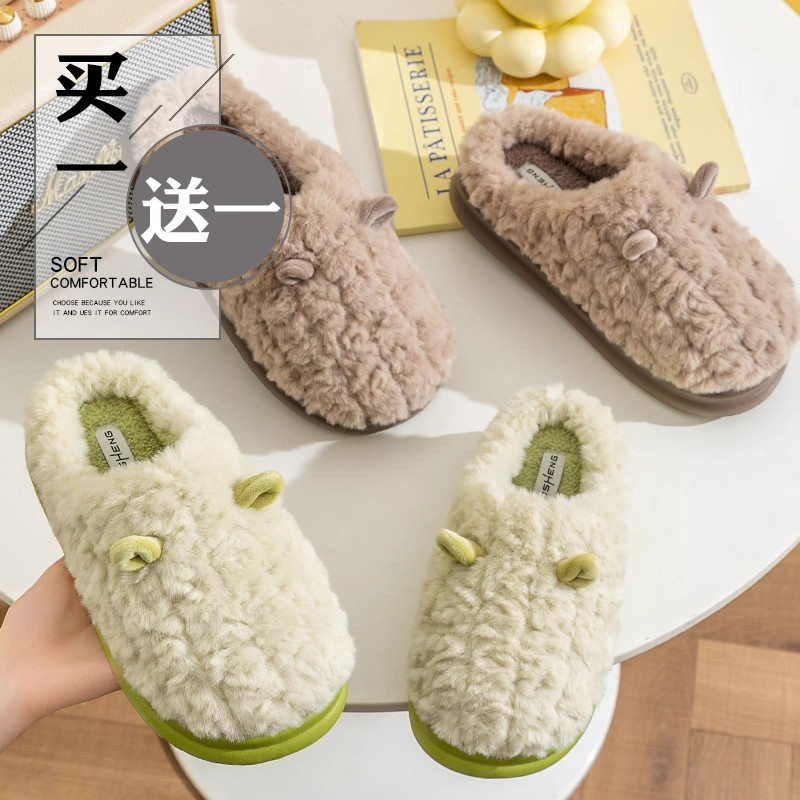 买一送一棉拖鞋女士秋冬季2025新款室内家居情侣一对保暖棉拖男款
