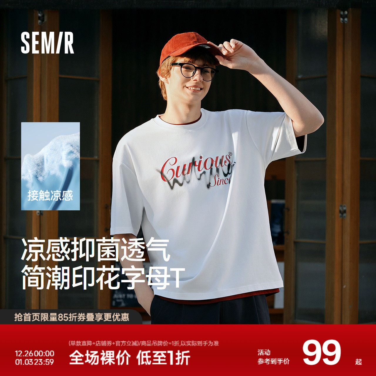 森马短袖T恤男简潮印花字母t恤凉感抑菌2025夏季新款上衣宽松时髦