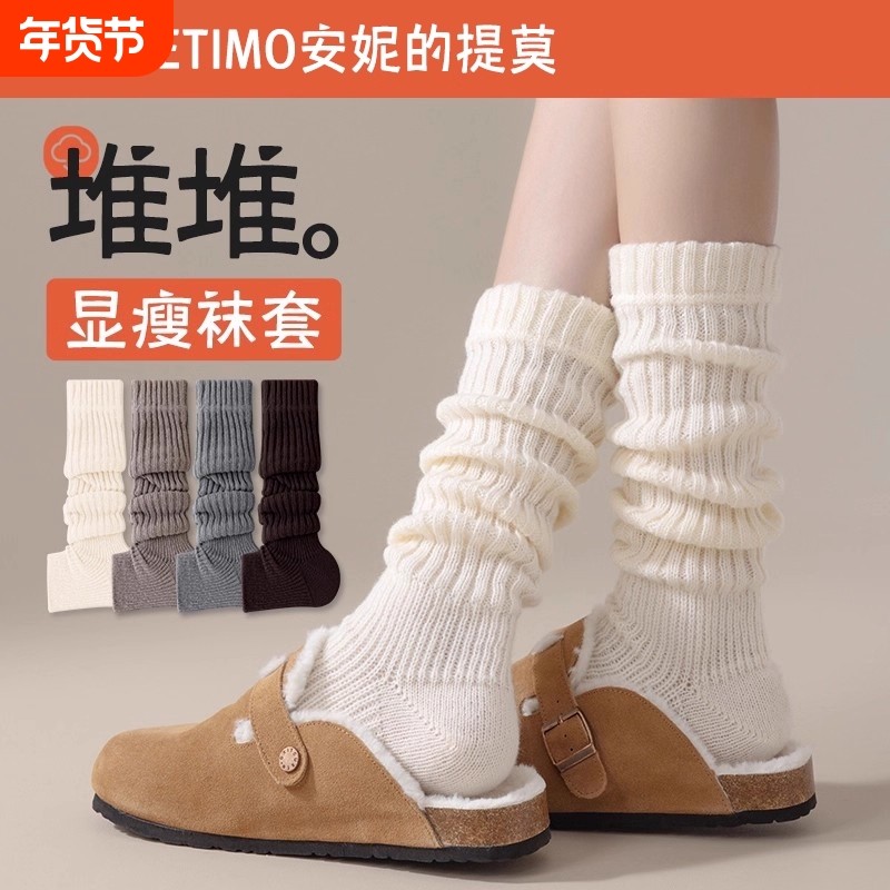 踩脚袜套女春秋冬季中筒袜子针织腿套y2k辣妹长筒袜勃肯鞋堆堆袜