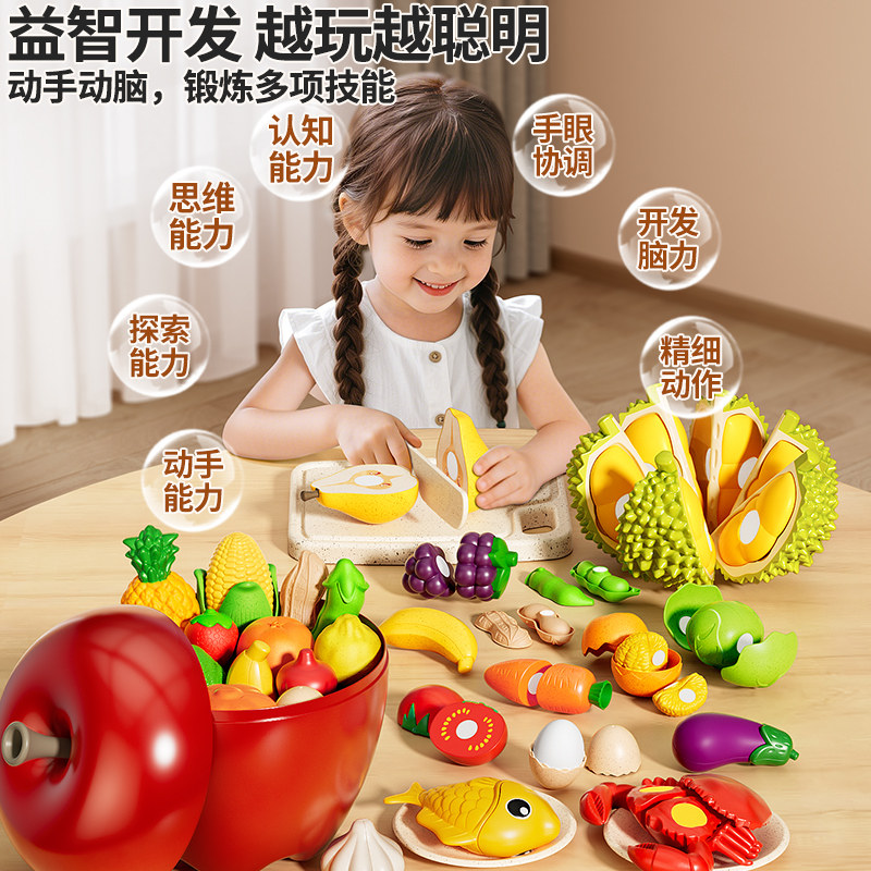 儿童水果切切乐玩具过家家可啃咬厨房男女孩宝宝礼物真实益智榴莲