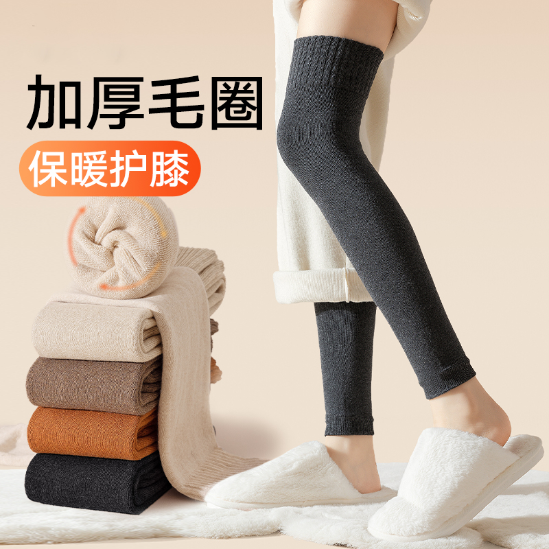 过膝袜子女秋冬羊毛长筒袜加厚保暖护膝大腿袜纯棉压力显瘦高筒袜