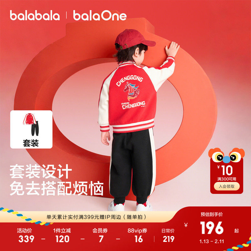 【balaOne】巴拉巴拉童装儿童套装男童2025新款春秋装棒球服新年