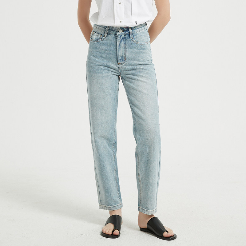 四面弹丹宁色牛仔阔腿裤25年新款宽松显瘦牛仔长裤89173