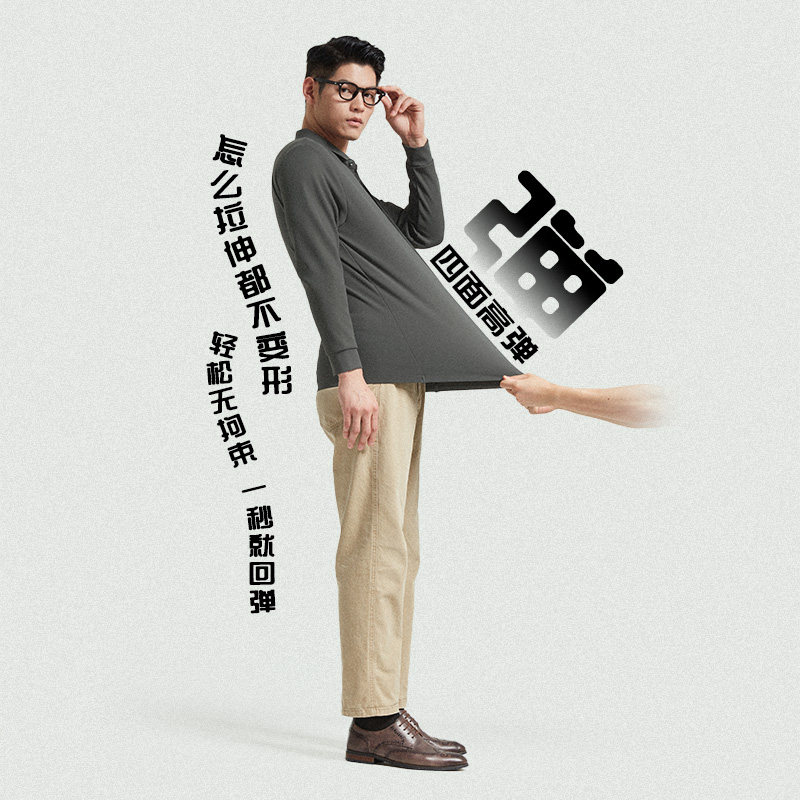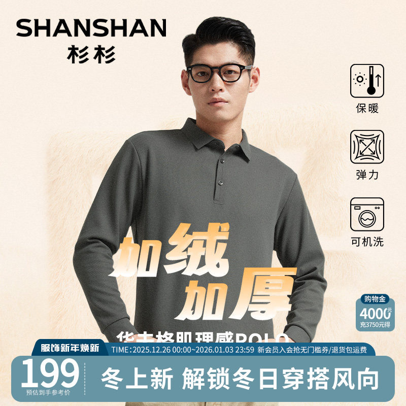 [加绒加厚]杉杉高弹长袖polo衫男款2025秋冬新品保暖肌理男士t恤