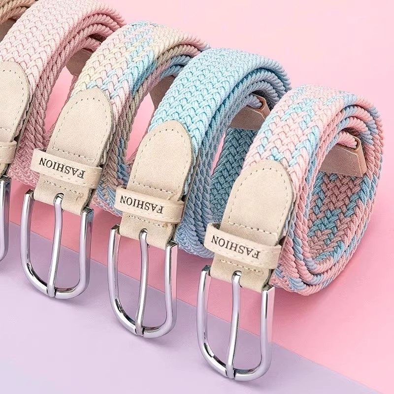 帆布腰带女百搭牛仔裤夏季休闲免打孔编织懒人松紧弹力针扣皮带潮