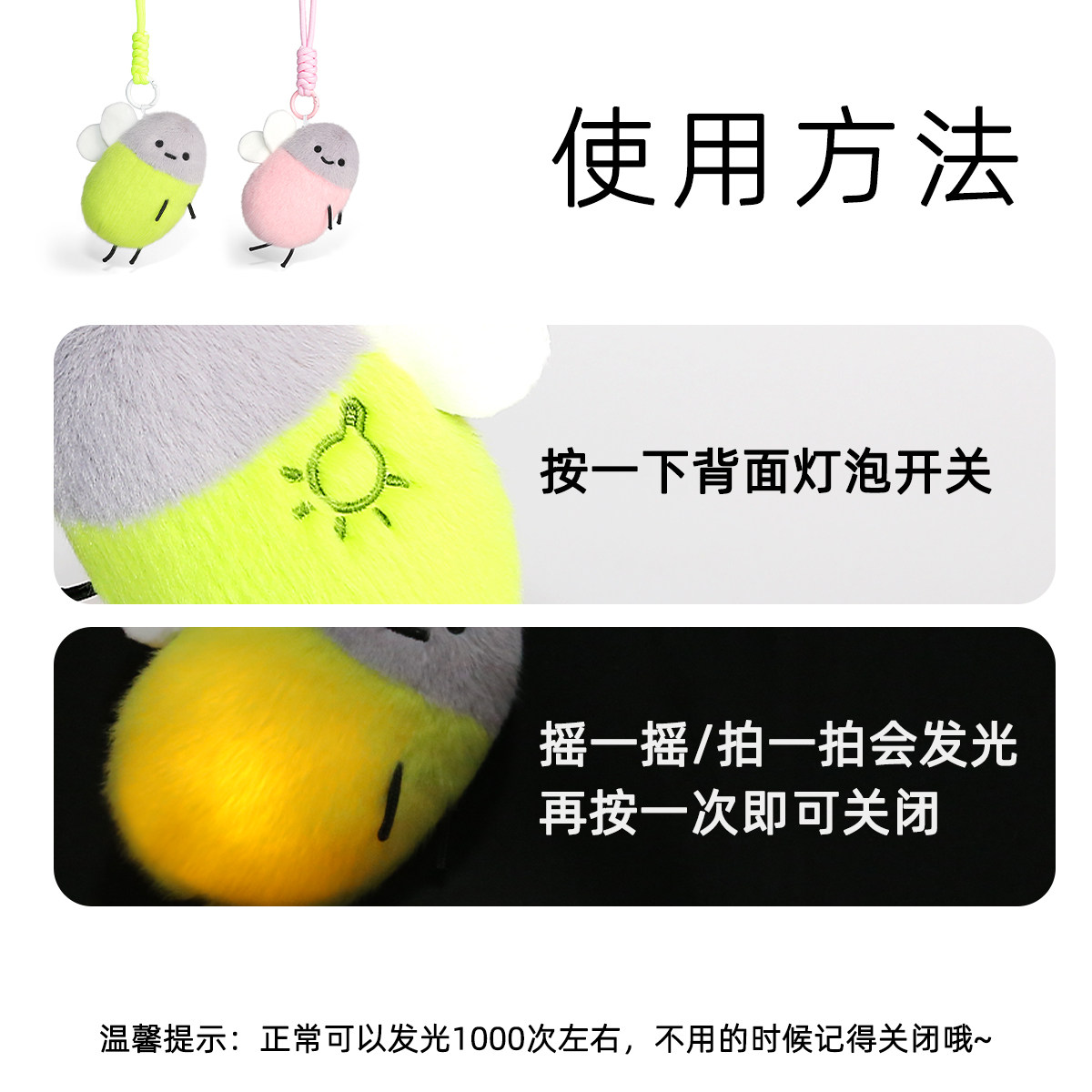 波波娃发光萤火虫毛绒挂件书包钥匙扣挂饰小玩偶生日礼物公仔狐狸