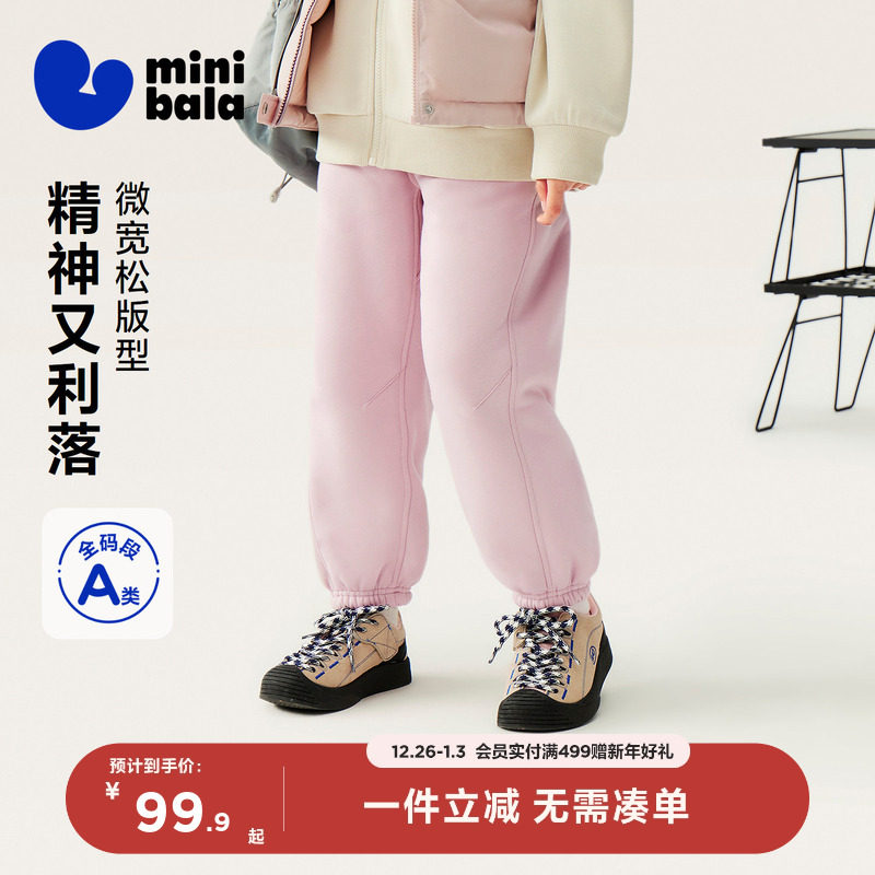 迷你巴拉巴拉男女童裤子2025冬新品内里加绒舒适无感腰头宽松长裤