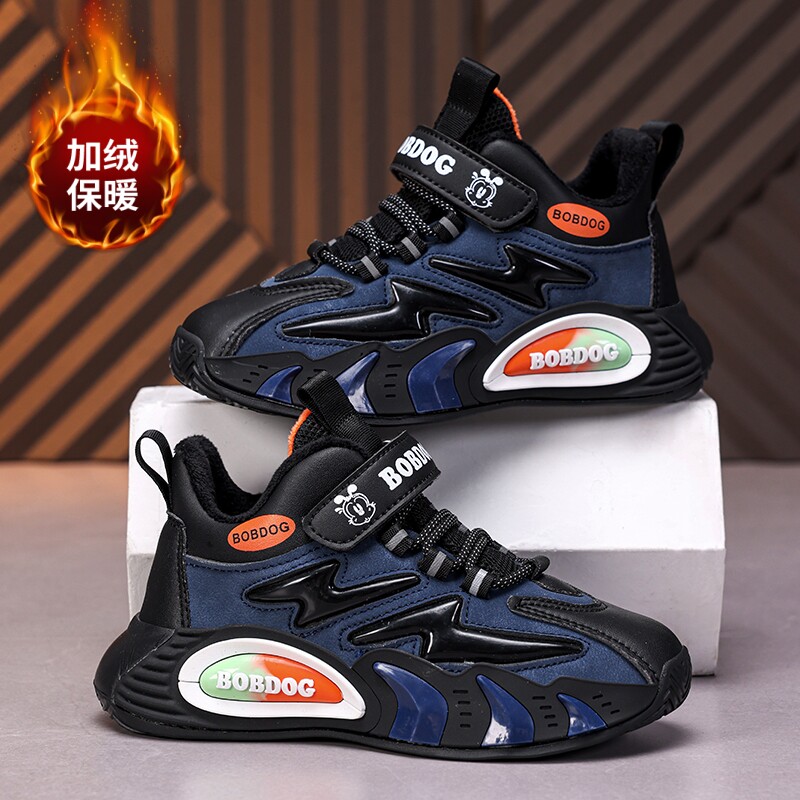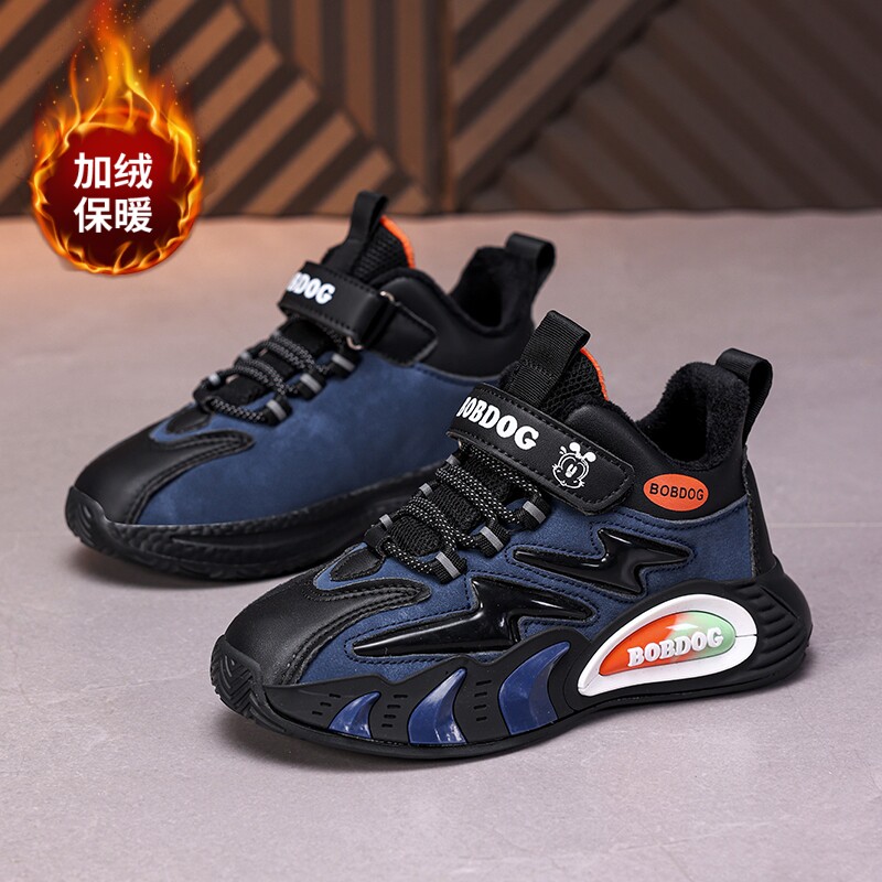 川尘3|鸿星尔克童鞋冬季加绒男中大童鞋子保暖加厚二棉休闲运动鞋