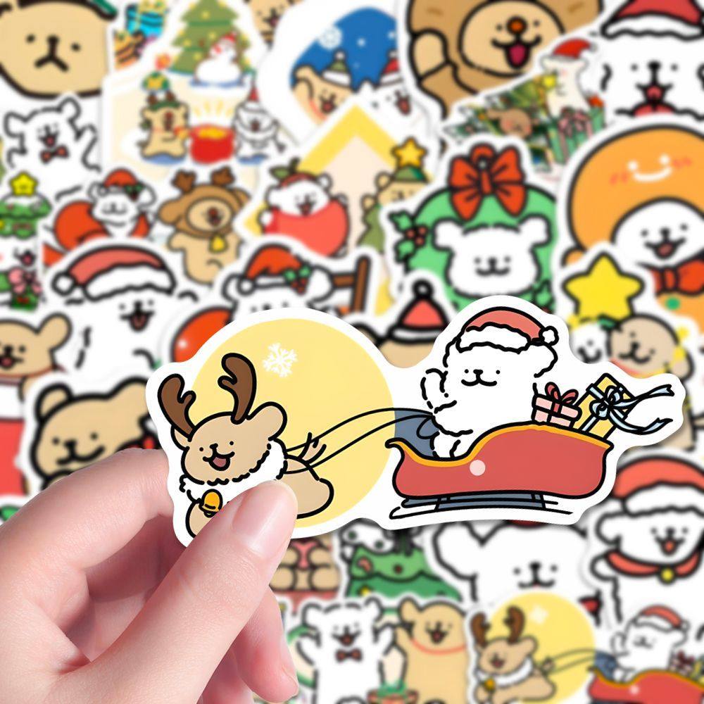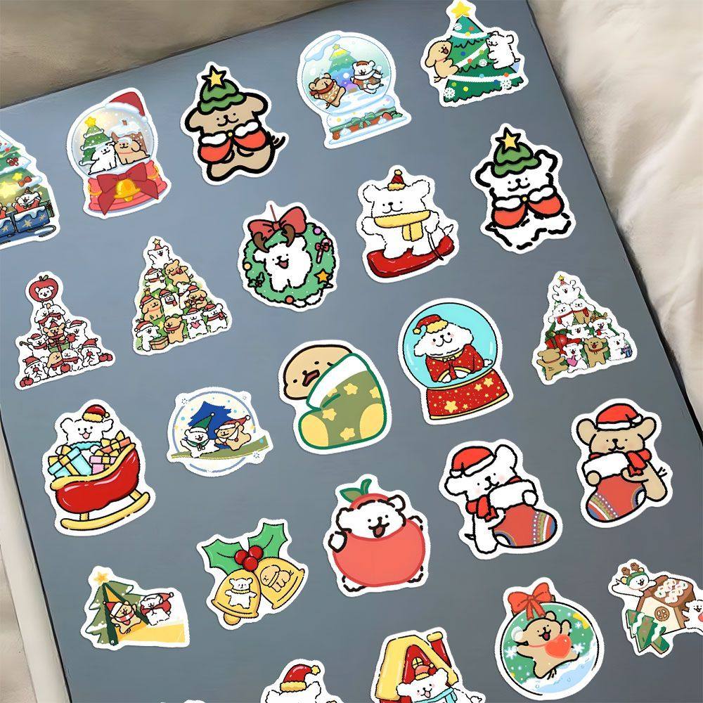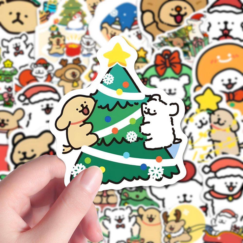 180张圣诞线条小狗贴纸圣诞节日氛围小鸡毛小白卡通可爱装饰贴画