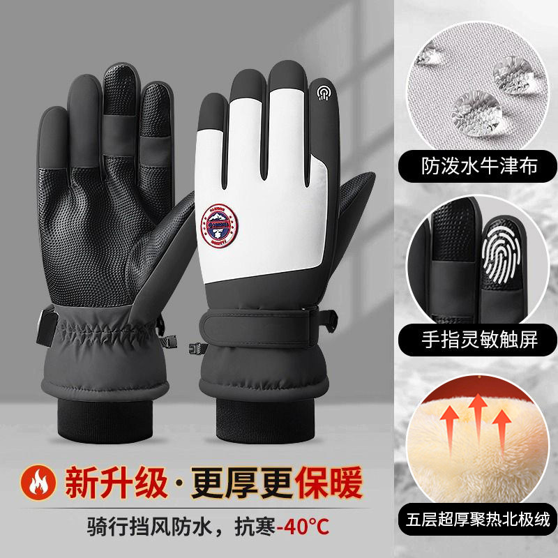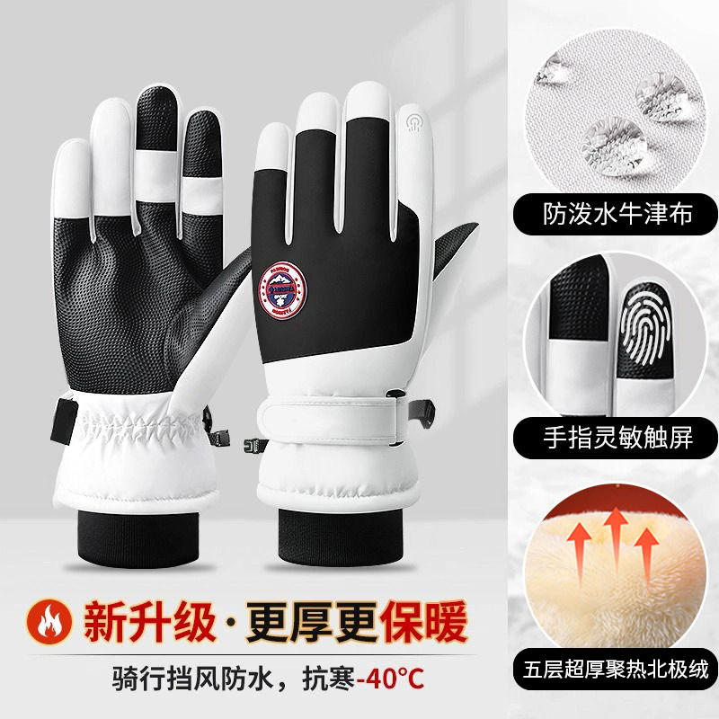 冬季保暖加厚骑行滑雪手套触屏摩托车加绒防水防风寒防滑户外防雨