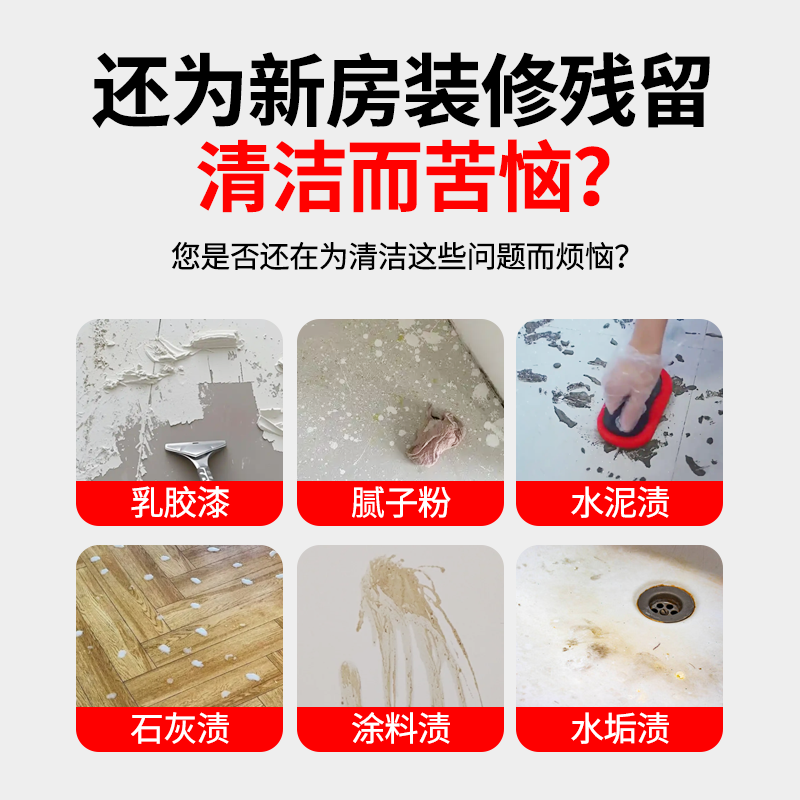 新房装修开荒保洁清洗剂乳胶漆清洁剂腻子粉水泥瓷砖玻璃专用神器