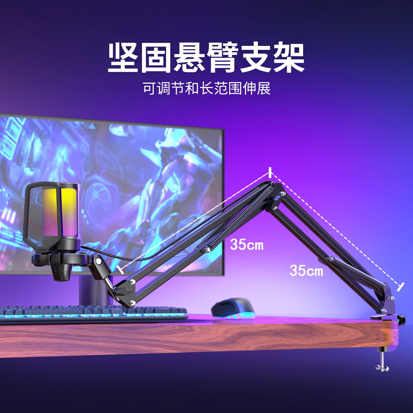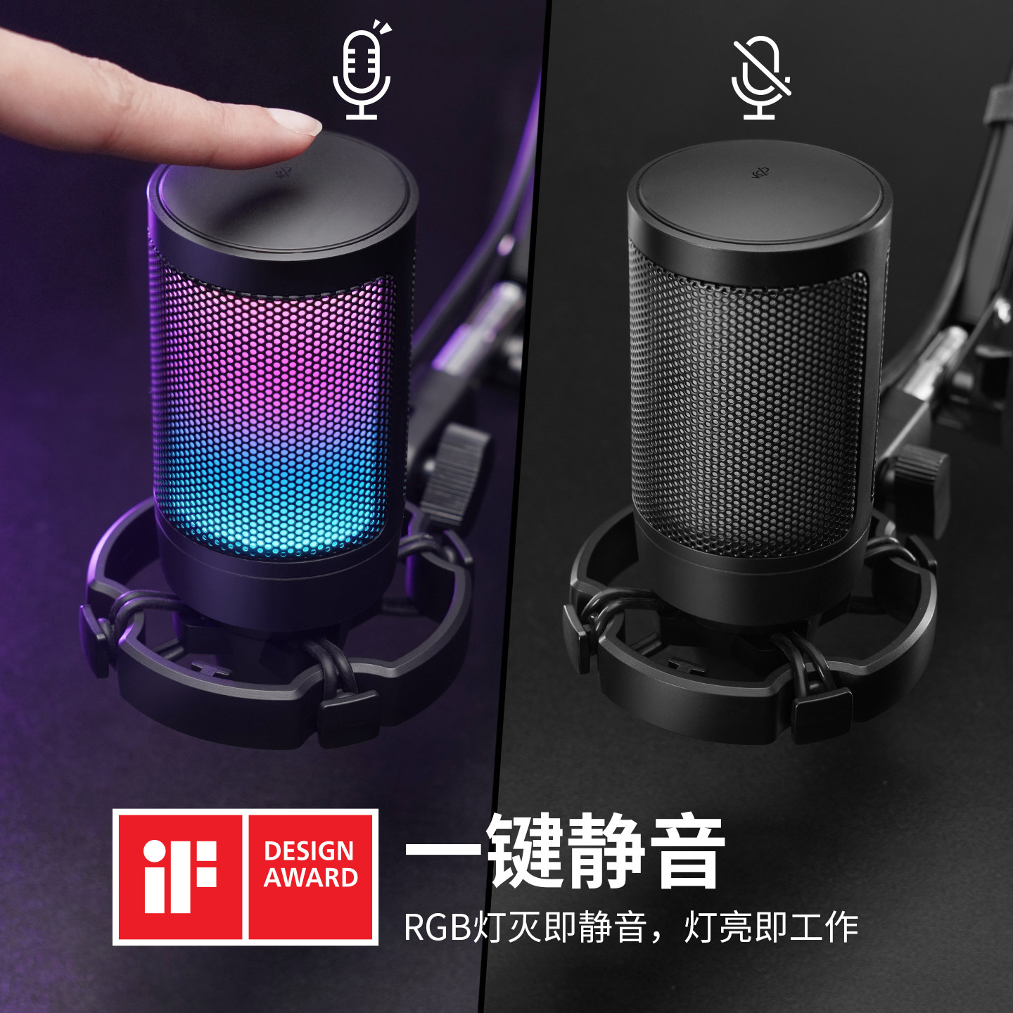 fifine A6游戏麦克风RGB灯电容麦电脑台式笔记本录音电竞直播录歌