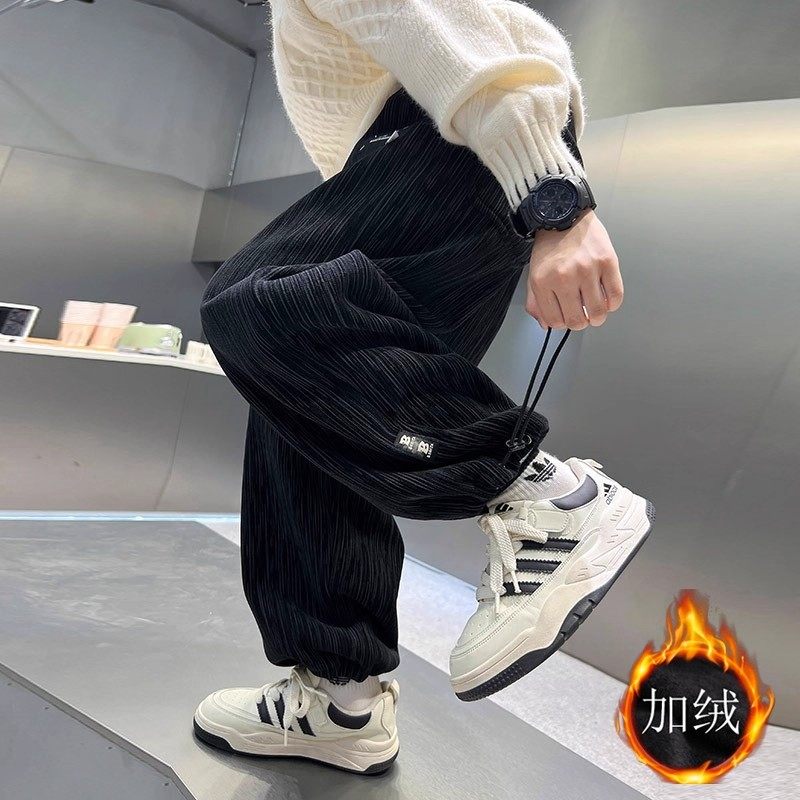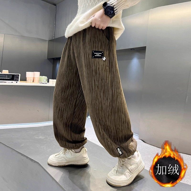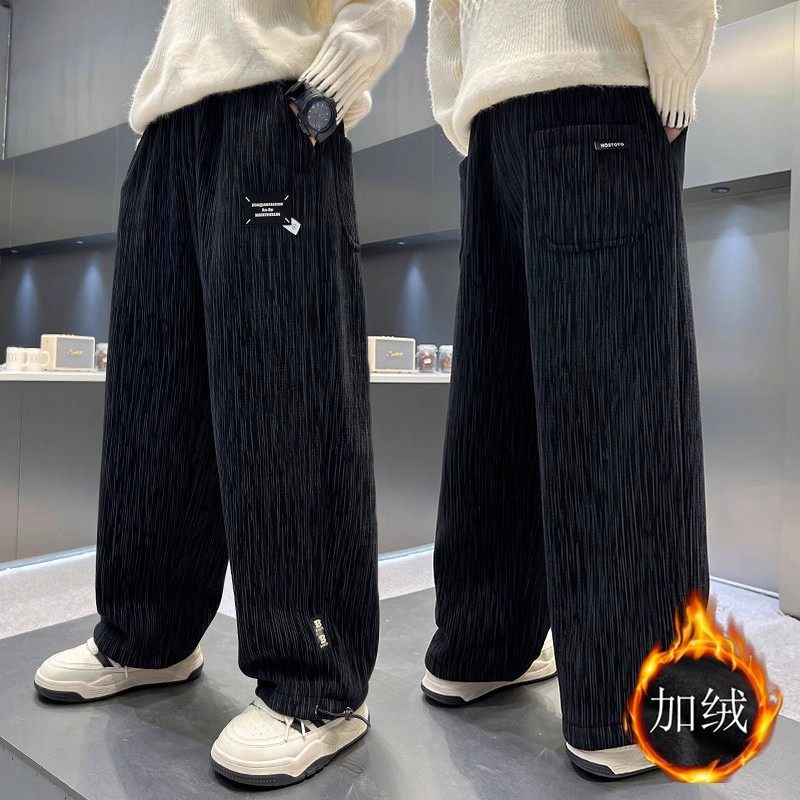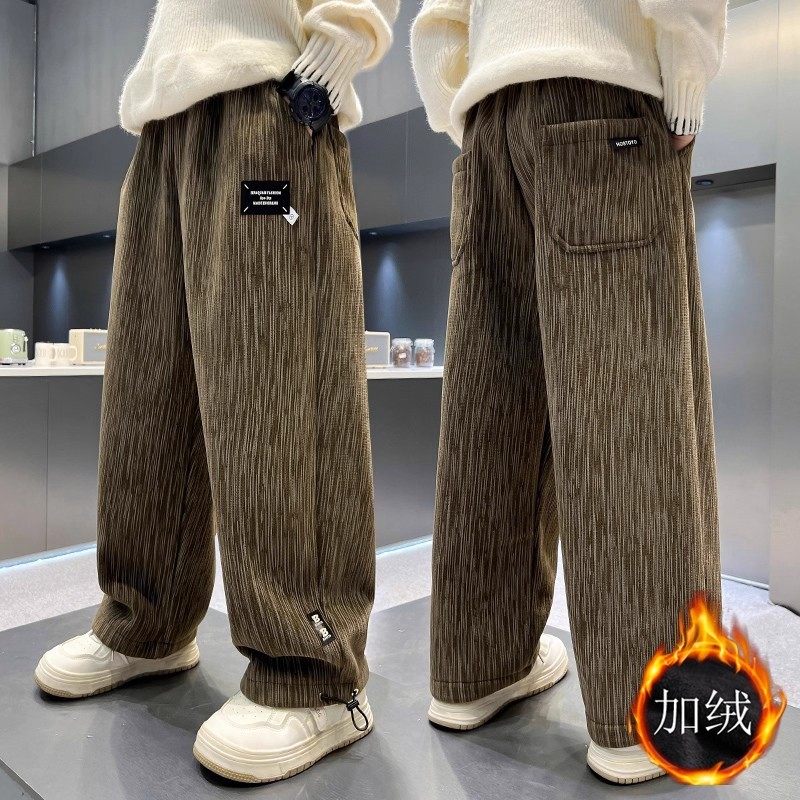 男童裤子秋冬款2025年中大童加绒加厚休闲裤儿童装直筒裤长裤条纹
