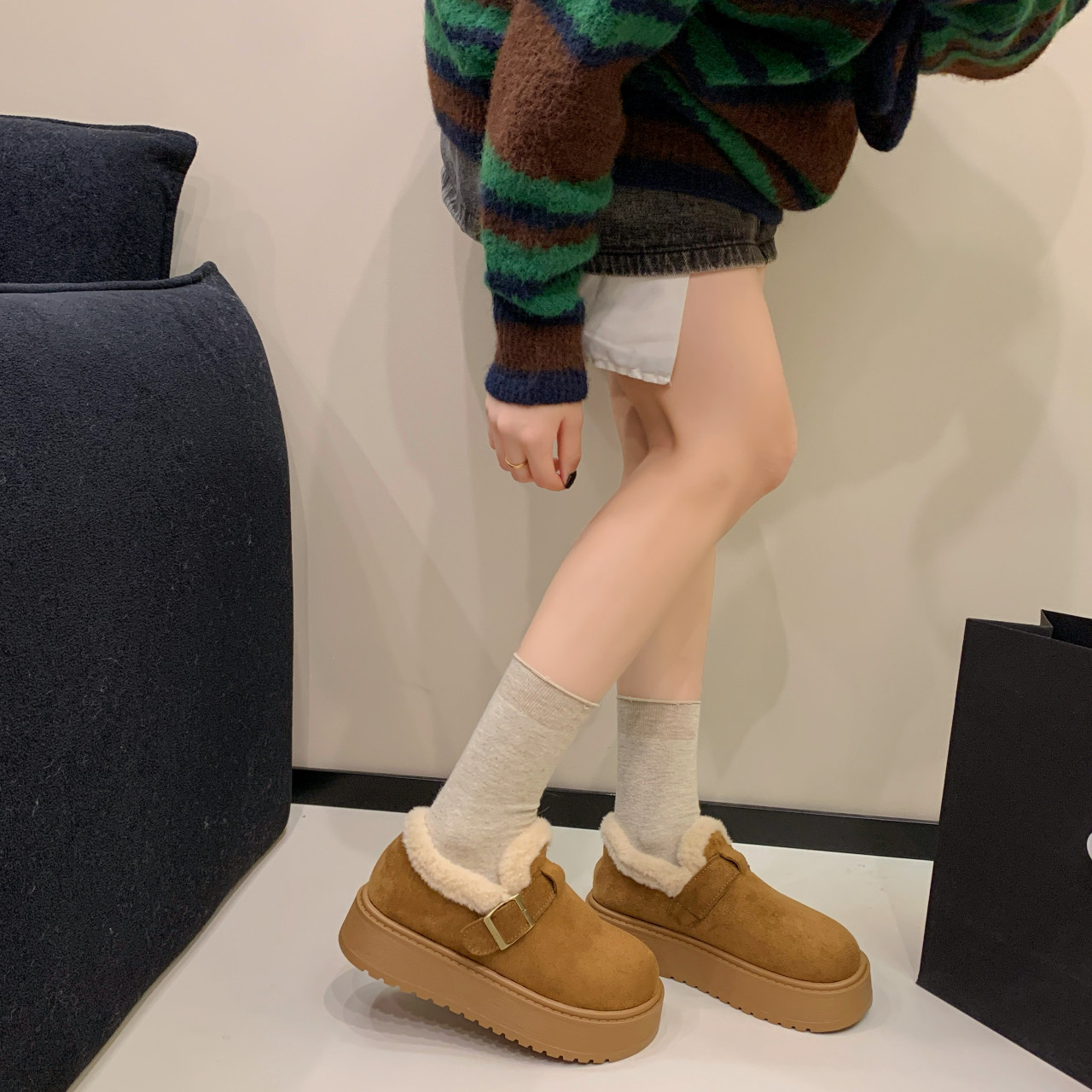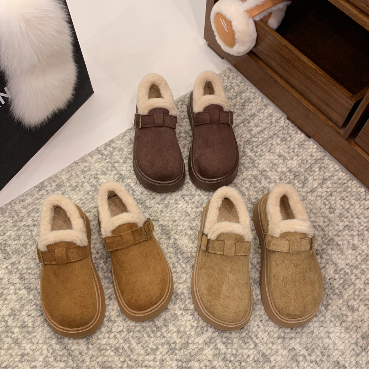 厚底加绒豆豆勃肯鞋女2025新款秋冬季外穿毛毛鞋子保暖棉鞋雪地靴