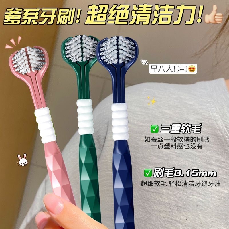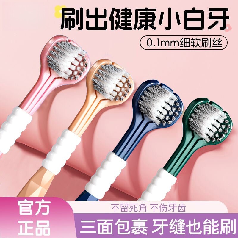 怡宝三面牙刷成人软毛包裹式立体无死角头舌苔清洁护齿家庭装男女
