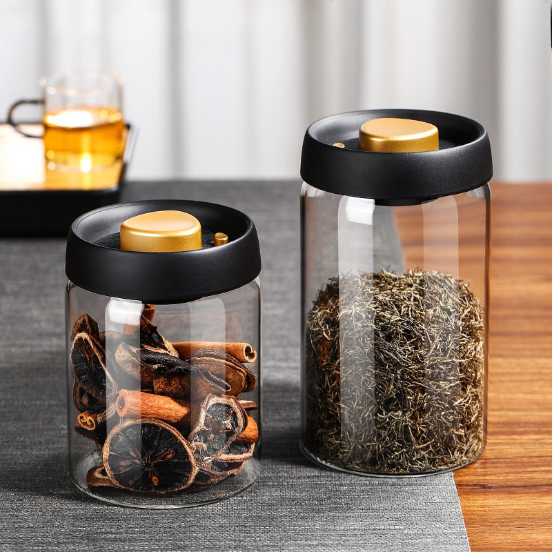 咖啡罐抽真空密封罐玻璃收纳瓶防潮密封储物罐咖啡粉保存罐茶叶