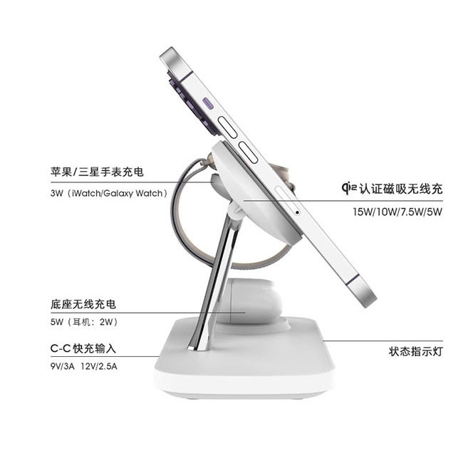 Qi2无线充电器magsafe磁吸三合一无线充电器