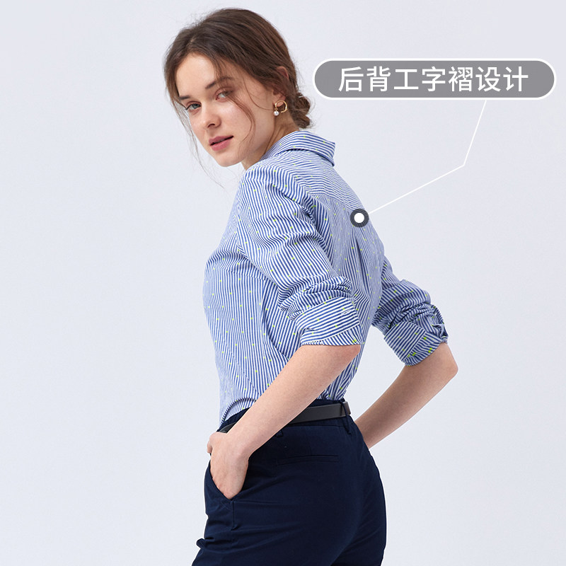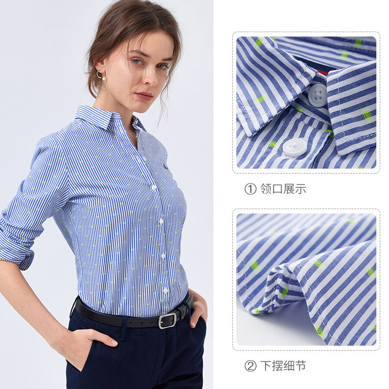 纯棉DP免烫白衬衫女定制绣LOGO春秋修身100支职业抗皱长袖衬衣