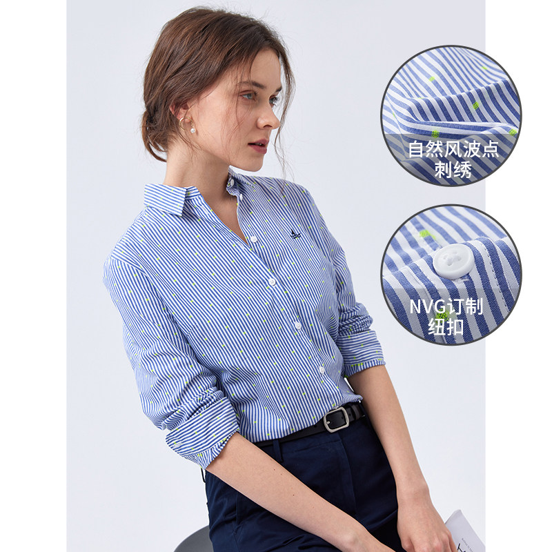 Navigare意大利小帆船长袖竖条纹衬衫女2026年春季质感衬衣