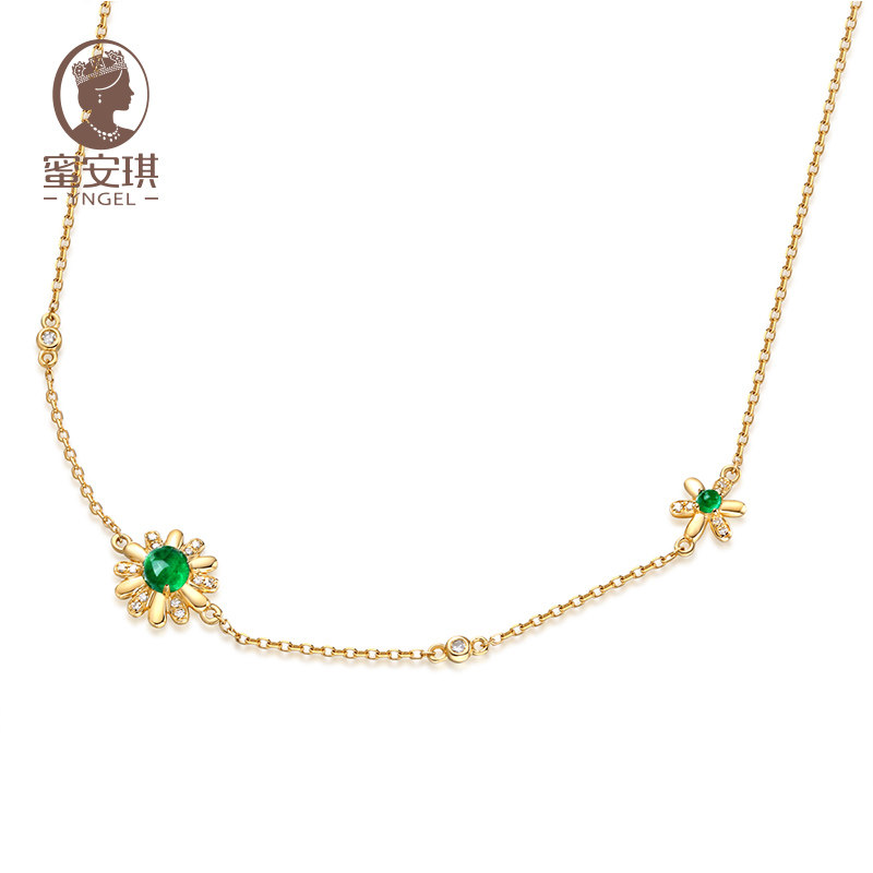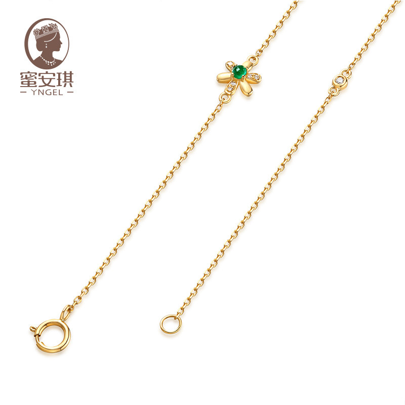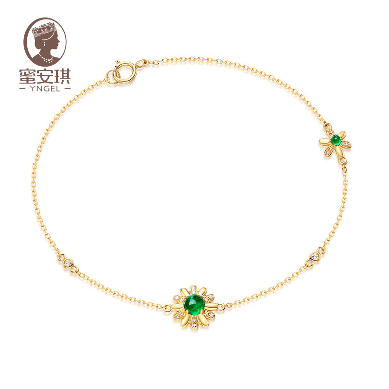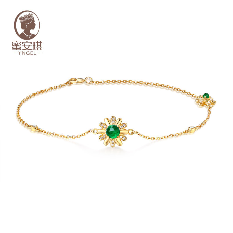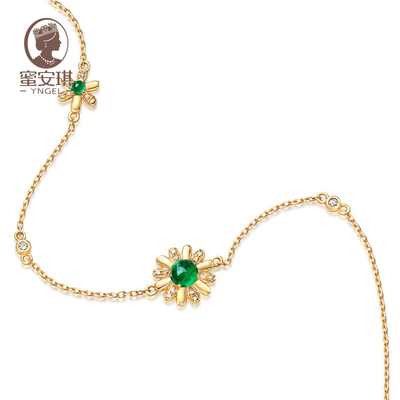 Yngel/蜜安琪珠宝新品天然祖母绿手链18k金钻石镶嵌 彩宝首饰定制