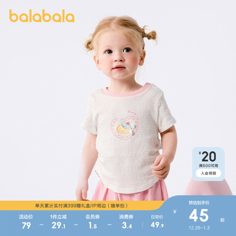 巴拉巴拉宝宝短袖t恤婴儿女童上衣2025新款夏装甜美时尚洋气清新