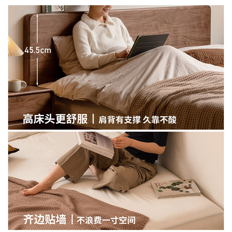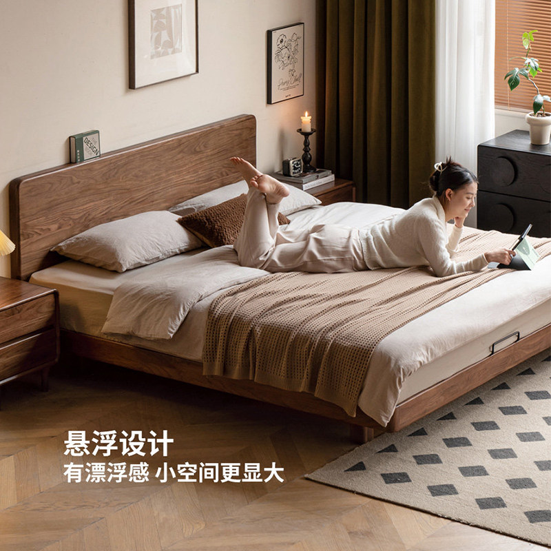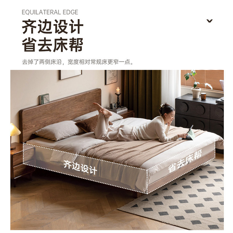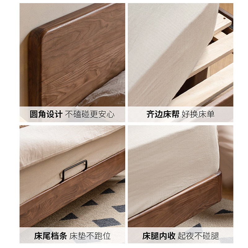 实木床双人床大床1.5m单人床榻榻米床家用主卧齐边排骨橡木床床架