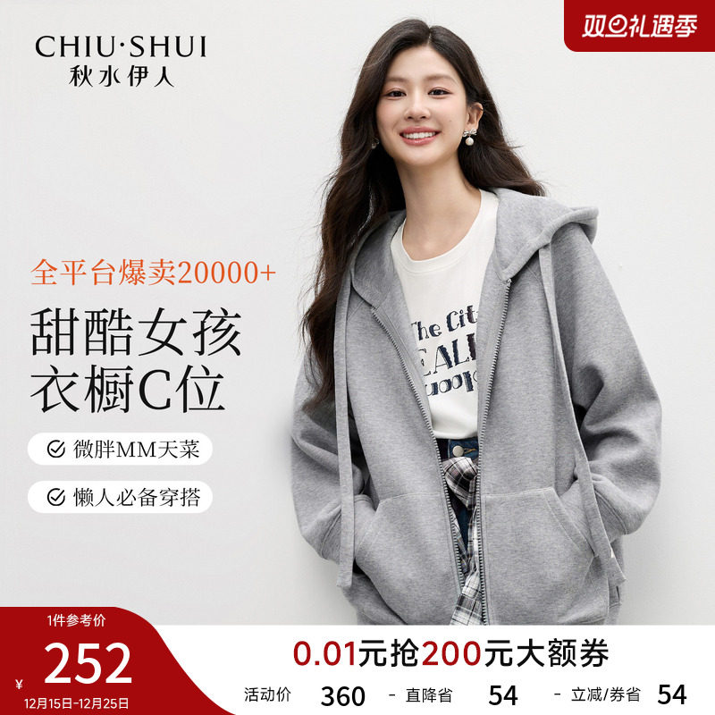 秋水伊人宽松卫衣外套女2025秋冬新款慵懒休闲长袖灰色格蕾系上衣