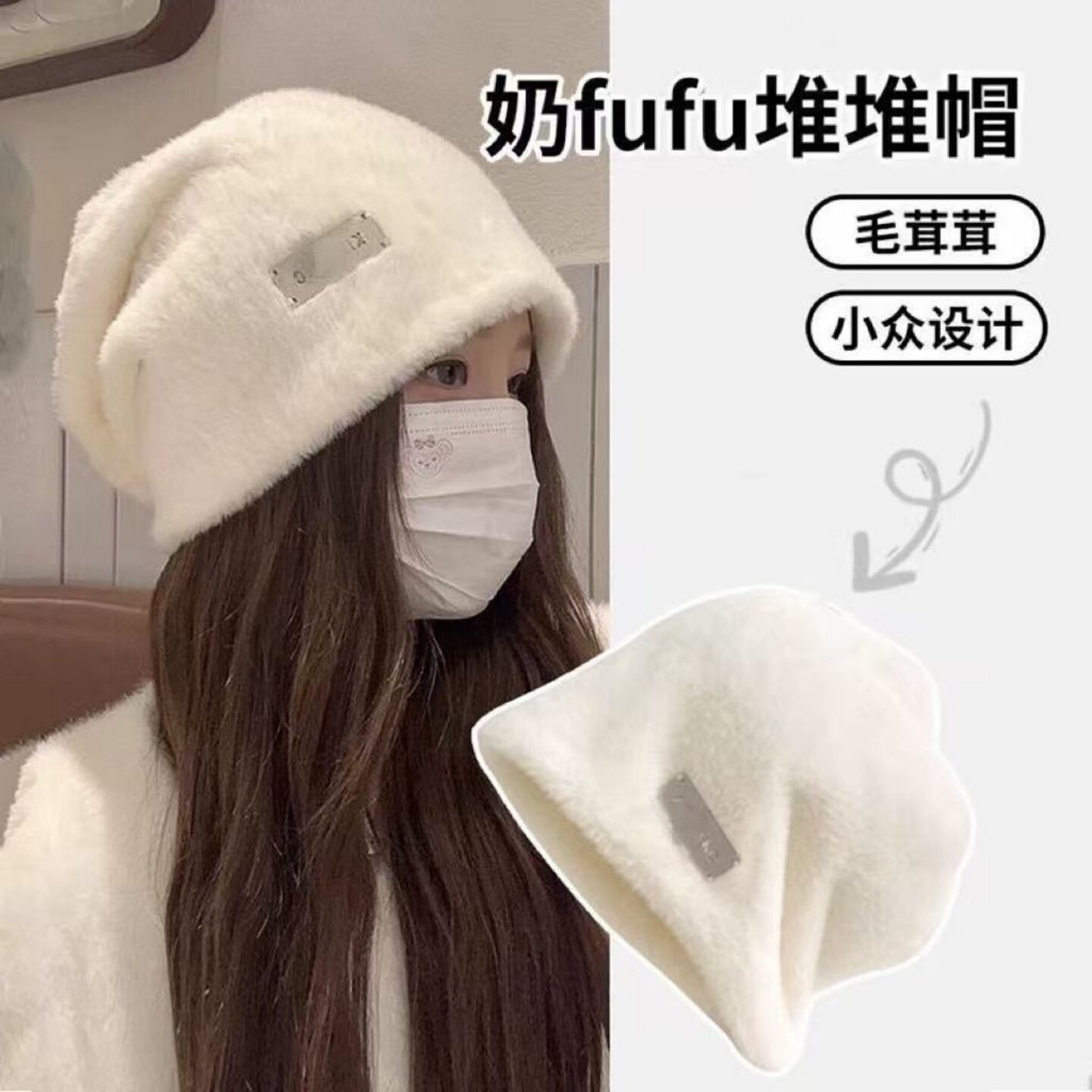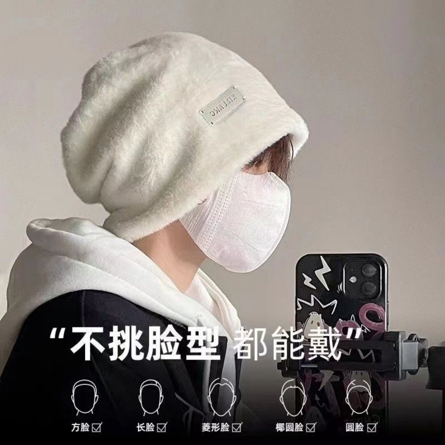 堆堆帽毛毛防冷帽兔毛秋冬季保暖防寒渔夫帽子大头围月子帽产后