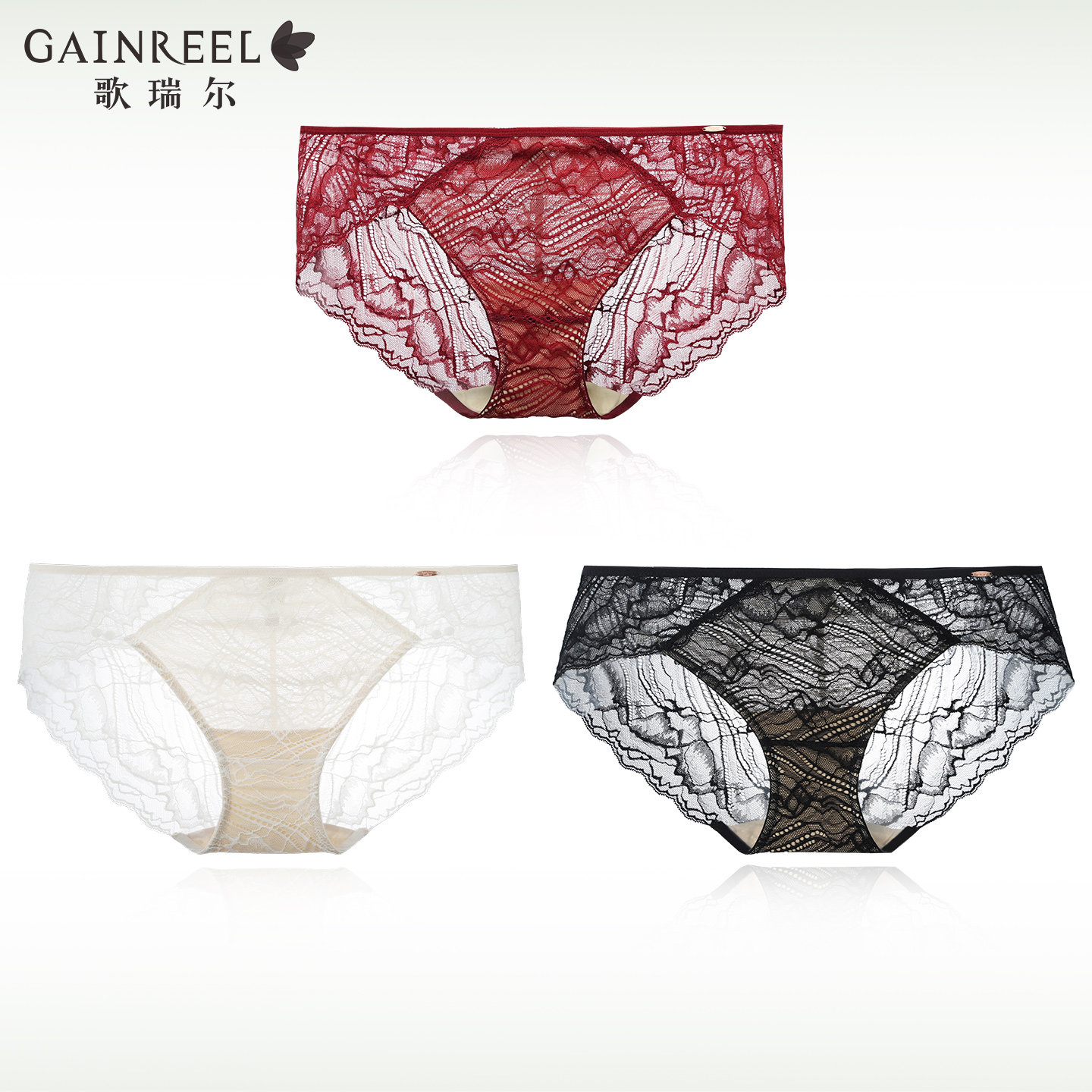 歌瑞尔蕾丝内裤女新款红色结婚新娘性感中低腰舒适透气法式三角裤