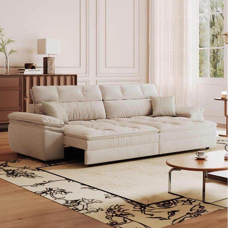 电动现代多功能布艺沙发沙发客厅沙发床猫爪奶油小户型伸缩直排