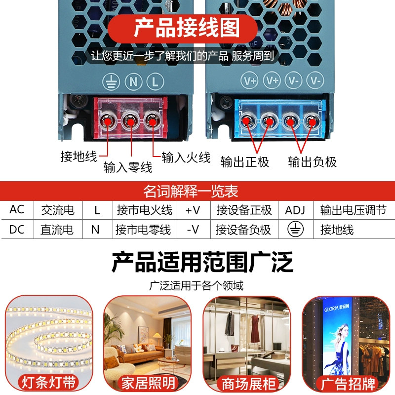 超薄黑金刚LED线型灯带变压器220V转24V低压直流线条灯条灯箱电源