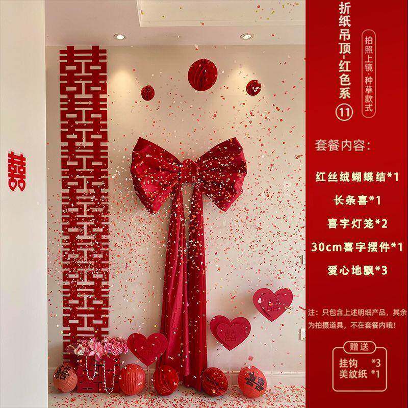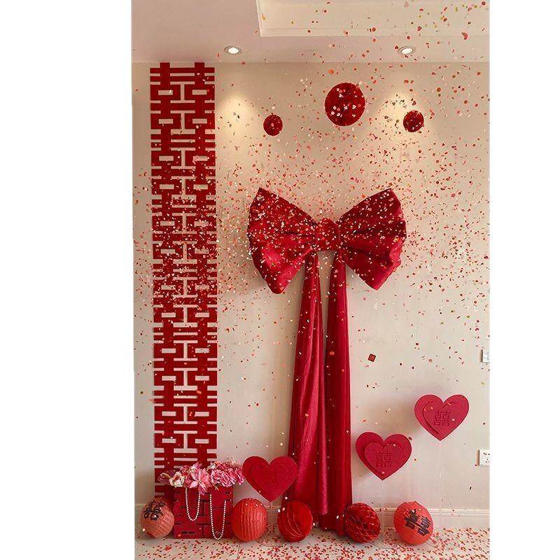 喜庆婚房装饰:超大红绒蝴蝶结挂饰新娘拍照道具新娘用品2025新款