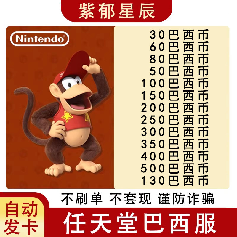 自动发 NS任天堂eshop巴西服Switch充值点卡50 100 250 300巴西币