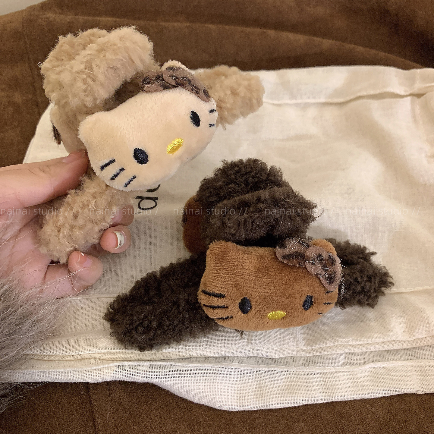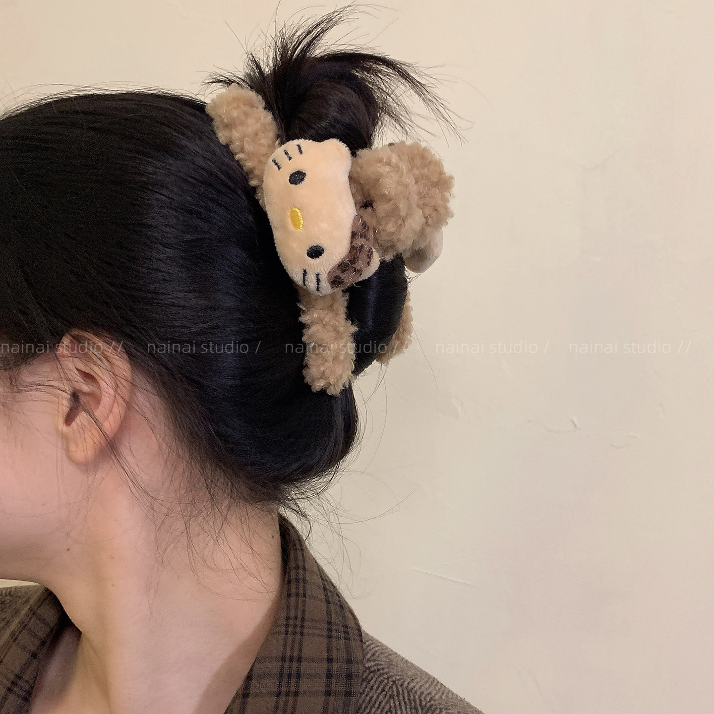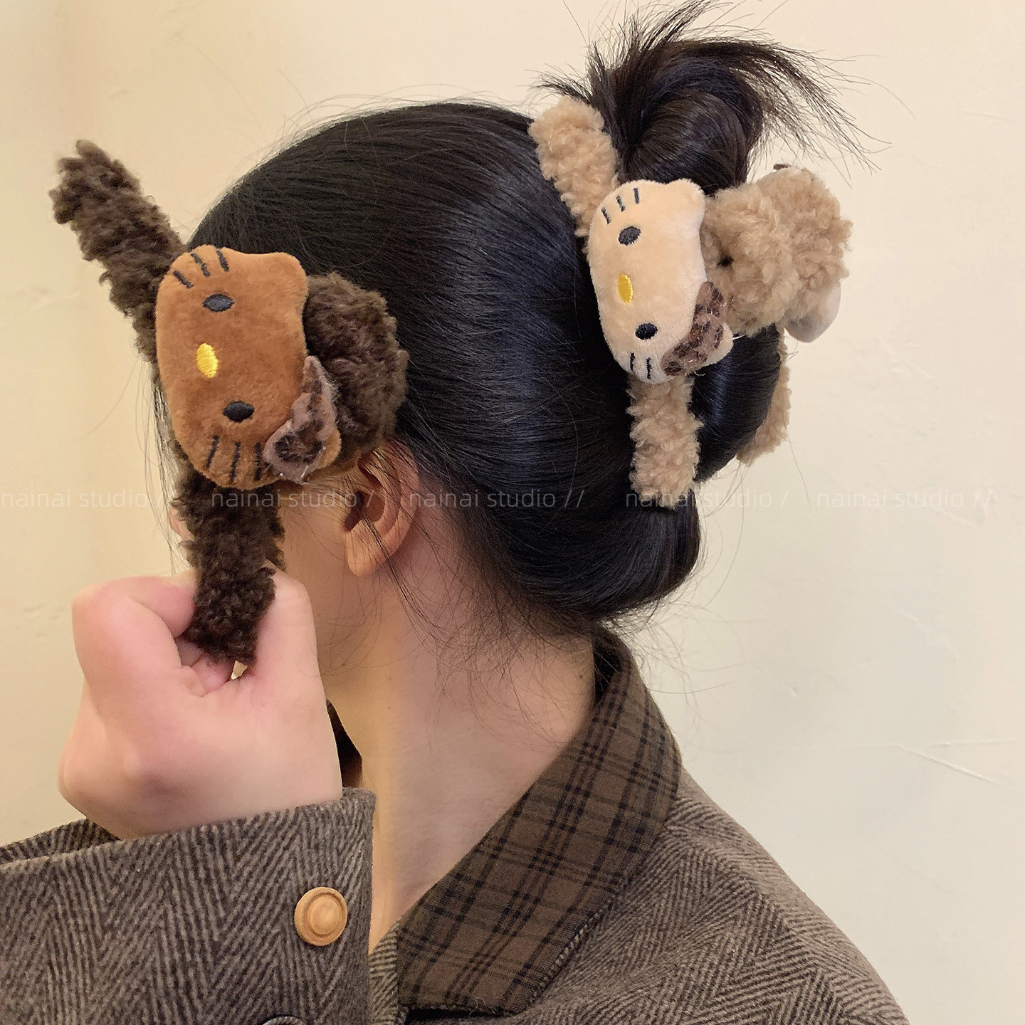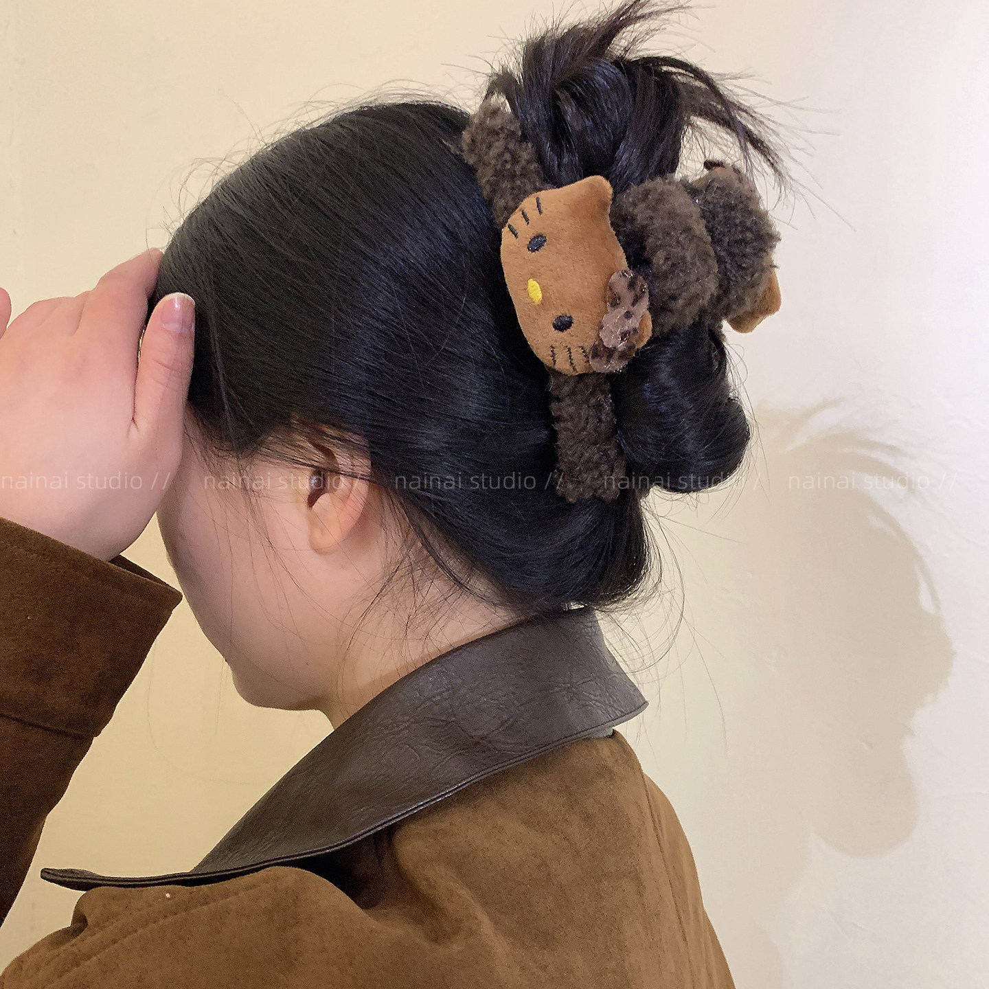 羊羔毛KT抓夹~毛绒黑皮豹纹Kitty猫咪后脑勺盘发鲨鱼夹大号发量多