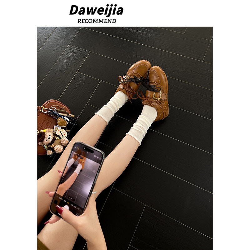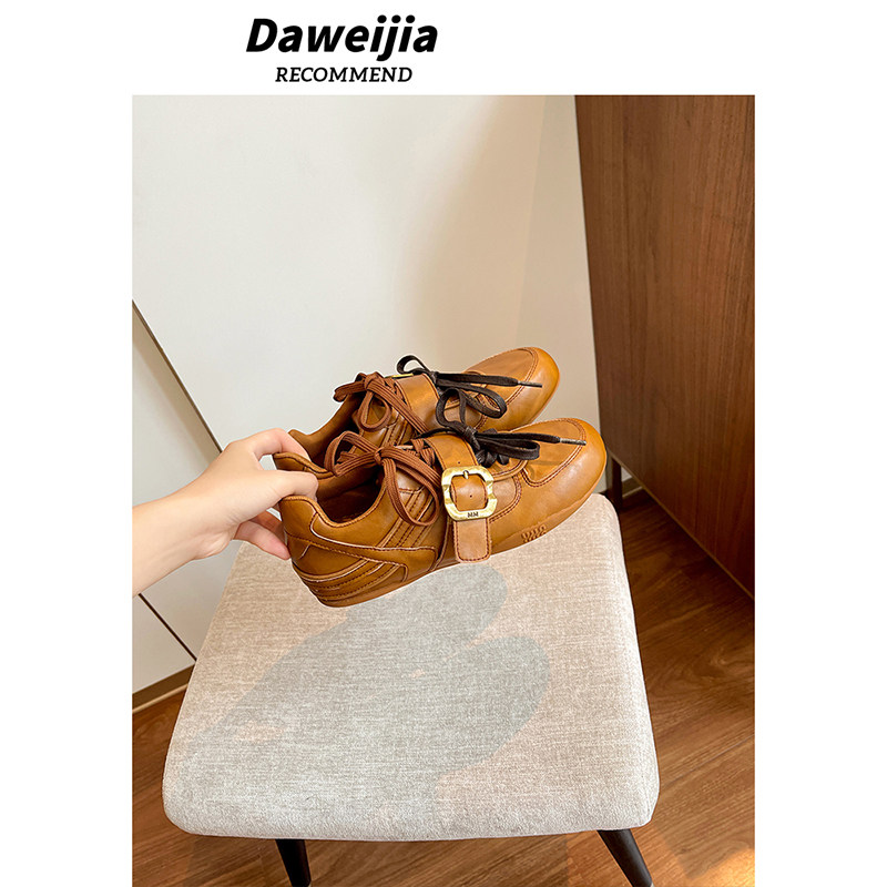 大薇家女鞋皮带扣双鞋带美式复古德训鞋平底时尚休闲鞋2025新款秋